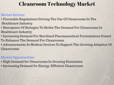 The market is mainly driven by rising regulatory concerns regarding better quality of healthcare products and safety of working personnel in healthcare industry; an upsurge in development of new biologics, increasing demand of sterilized pharmaceutical formulations, and rising applications of cleanrooms in medical device industry. However, the customized designing of cleanrooms as per customer requirements … Continue reading Cleanroom Technology Market worth $3,761.9 Million by 2019